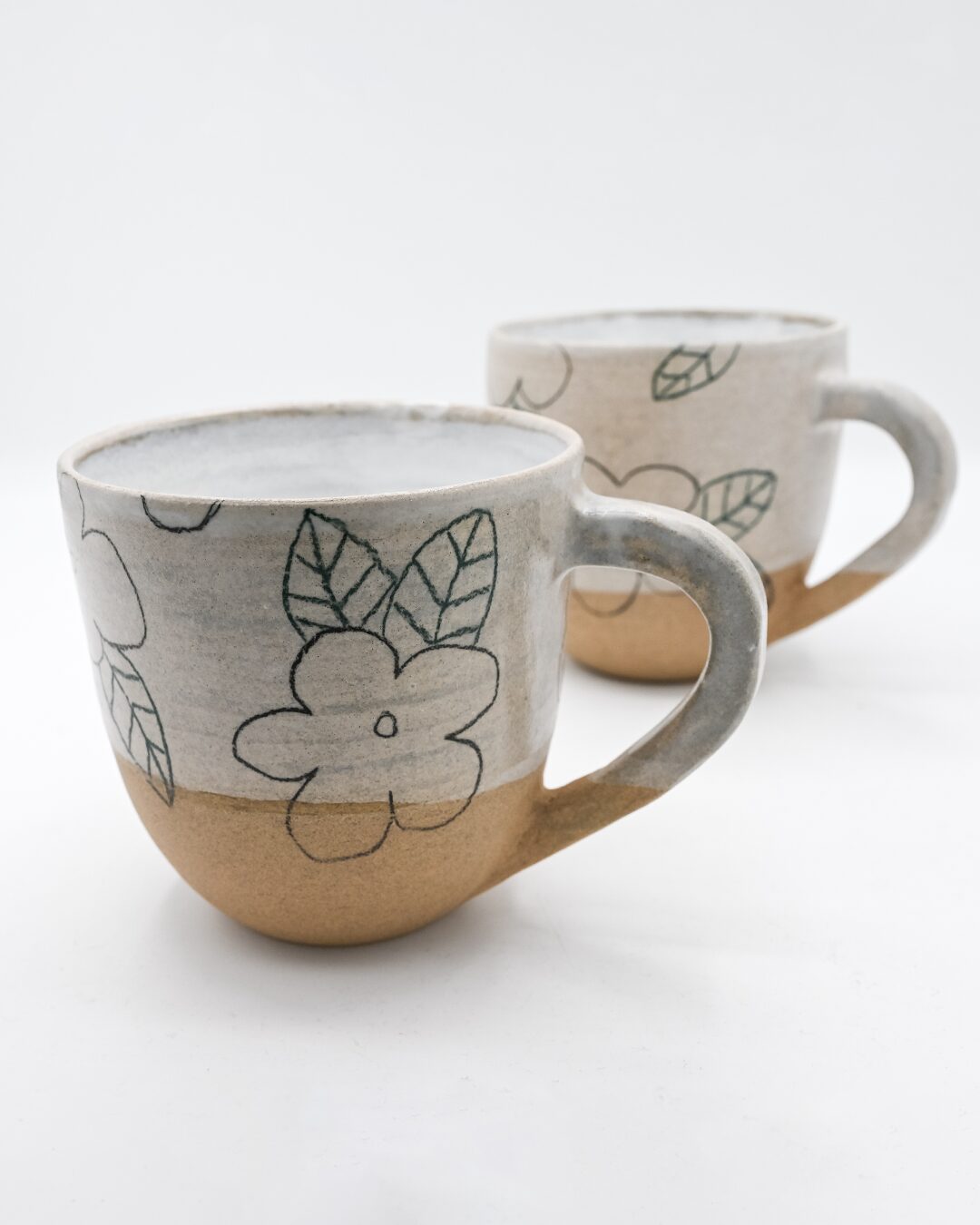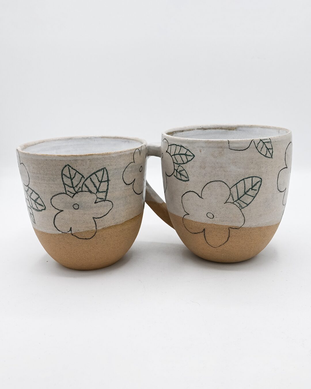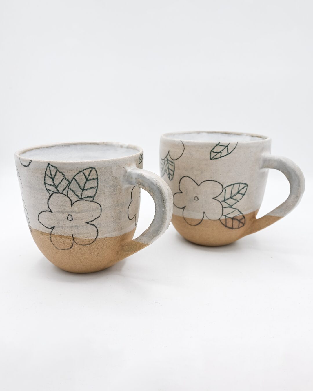 Chaque mug est une pièce unique, illustrée de motifs floraux naïfs qui semblent éclore sur la paroi de céramique. C’est l’équilibre parfait entre le caractère brut de l’argile et la délicatesse d’un dessin de jardin.