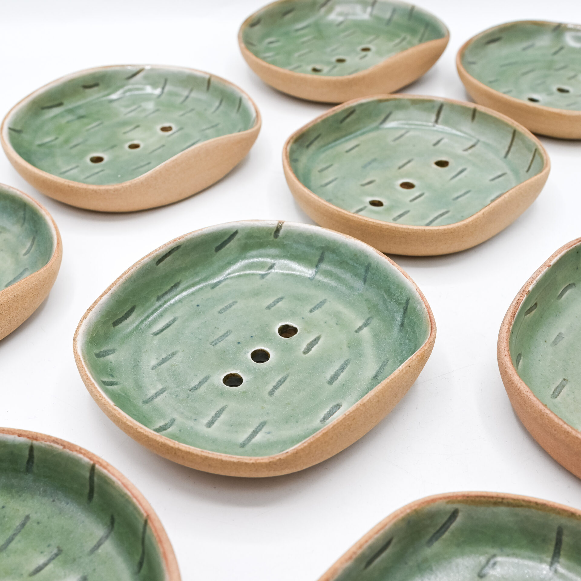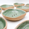 Redécouvrez le plaisir simple du soin de soi avec le porte-savon Clairière. Façonné à la main, ce porte-savon solide est une ode à la nature et à la tranquillité. Son coloris vert kaki profond, associé à des motifs graphiques discrets, évoque le calme d’une clairière ombragée.
